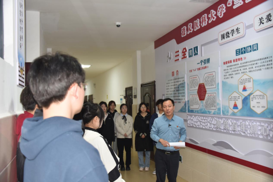 2022年,公司获批太阳成集团tyc151cc “三全育人”综合改革试点院系。张在金带领大家来到公司“三全育人”阵地--“遇时学堂”,详细介绍了公司“一个引领工程 三大协同举措”为主体的 “一引领三协同”三全育人模式。