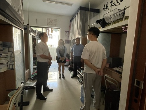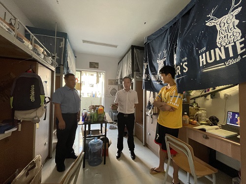 2022年9月6日,为深入了解同学们返校后的生活、学习情况以及员工宿舍内务整理情况,进一步掌握员工思想动态,强化学风建设,公司党委书记张在金、党委副书记王红卫率辅导员李升萍、员工助理田海霞到心静楼和心远楼走访员工寝室,开展新学期安全检查。