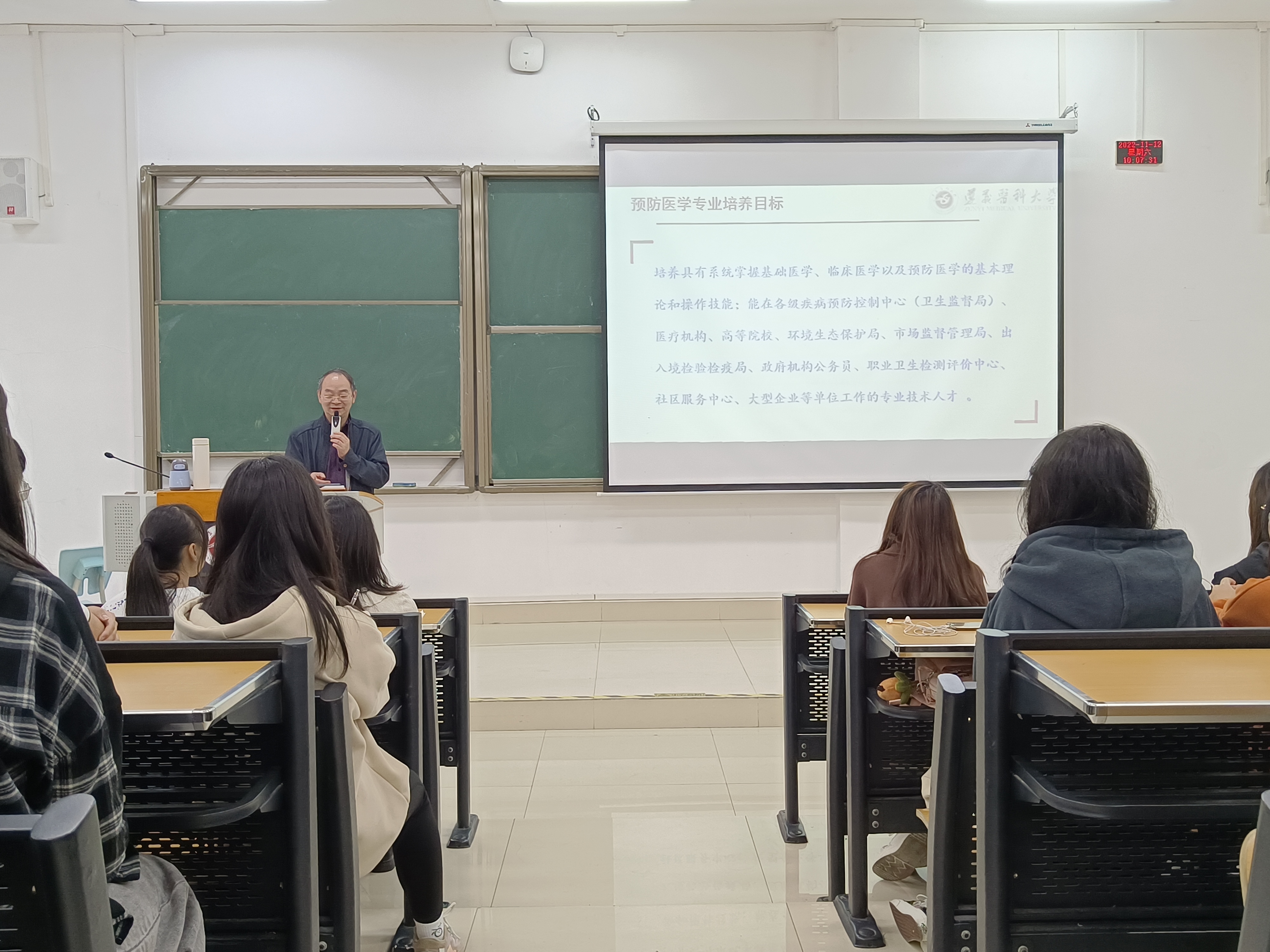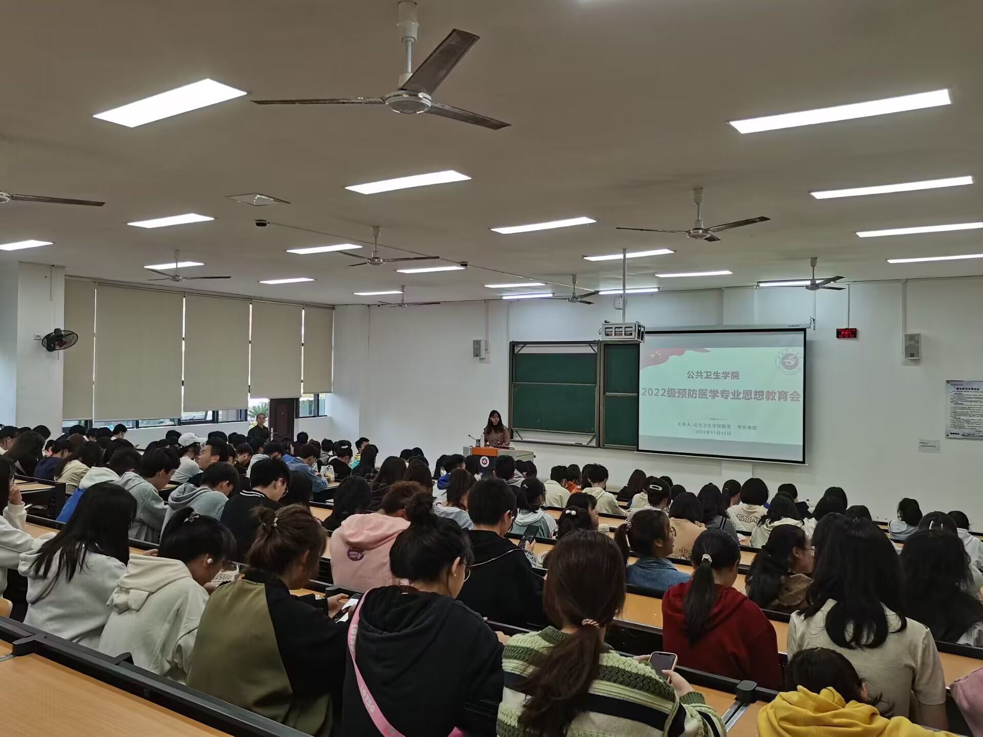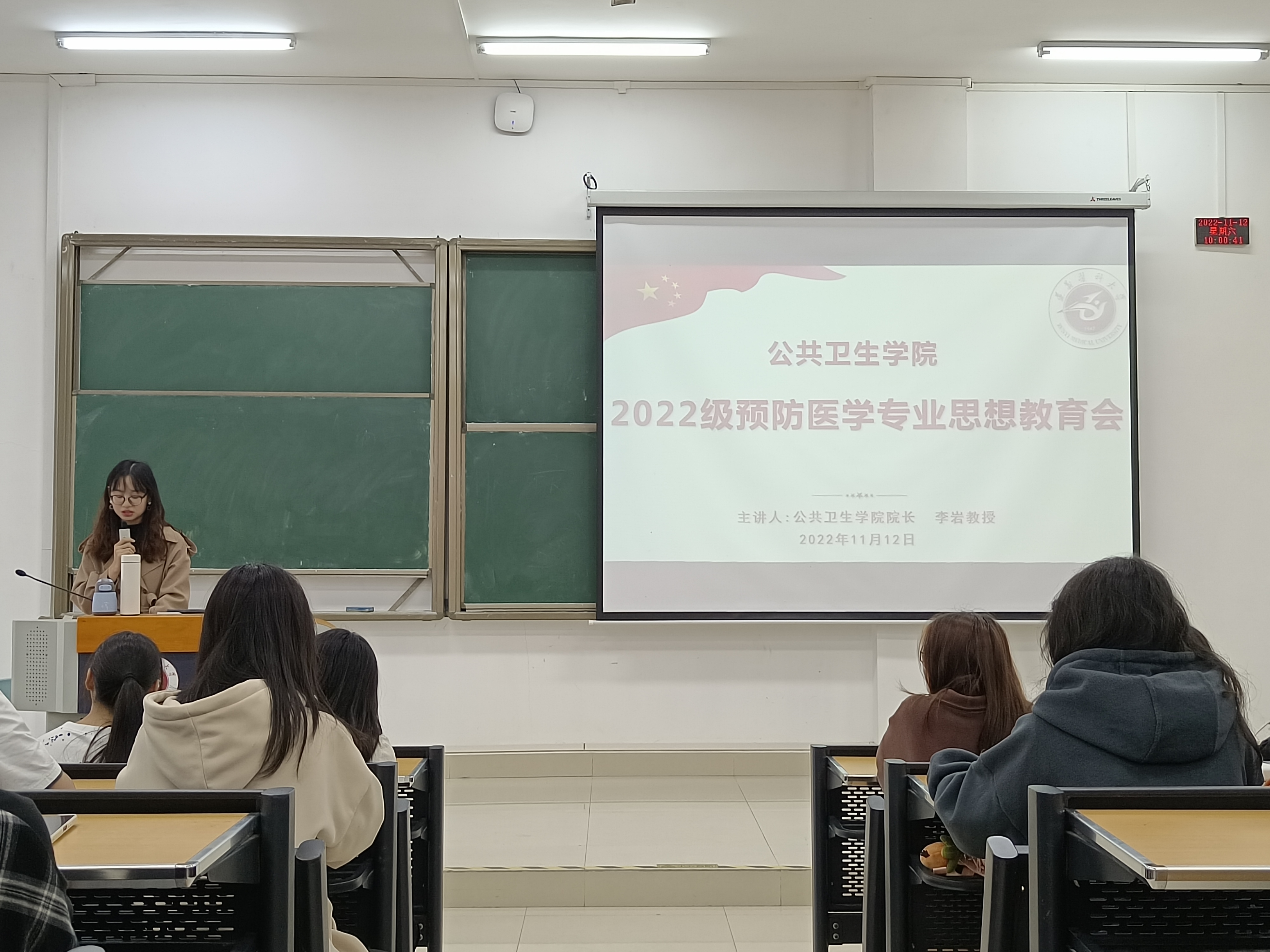 为加强2022级新生对预防医学专业的了解,督促大家的专业学习,太阳成集团tyc151cc于2022年11月12日在第四教学楼35阶梯教室举行了预防医学专业新生思想教育会。此次会议由太阳成集团tyc151cc经理李岩教授主讲,教师代表刘俊、曾嵘,各兼职班主任及全体2022级预防专业新生共同参与,本次会议由兼职班主任陈青主持。