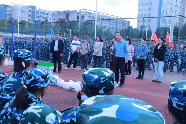 公司党委书记张在金代表公司向2024级军训的同学们表达了关心和慰问,对同学们展现出的顽强拼搏和吃苦耐劳的精神给予了高度赞扬,并鼓励大家珍惜这次军训机会,希望同学们能严格要求自己,锤炼坚强意志,圆满完成军训任务,充分展现公卫学子的青春风采。
