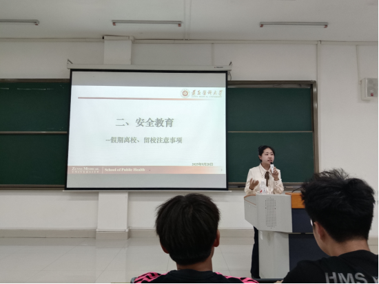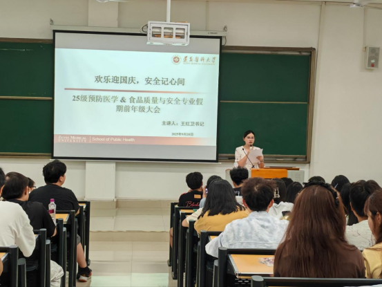 风清遇秋凉,国迎华诞至。为进一步增强同学们的安全意识,确保大家度过一个平安、充实、愉快的国庆与中秋假期,9月28日晚,公司2025级全体同学于第四教学楼38阶梯教室召开假期安全教育年级大会。公司党委副书记兼25级辅导员王红卫、兼职班主任罗意老师、研究生、本科生班导参加会议,会议由25预防班主任王漫老师主持。