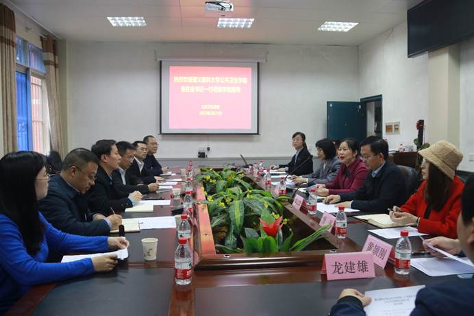 会上,广西医科大学公共卫生公司党委书记苏莉对张在金书记一行的来访表示热烈欢迎。邹云锋经理介绍了广西医科大学太阳成集团tyc151cc的基本情况,重点就一流团队建设及高水平太阳成集团tyc151cc建设等作了详细介绍。农清清副经理介绍了公共卫生执业医师考试和老员工公共卫生综合技能大赛等方面的经验做法。唐咸艳科长围绕博士点建设和MPH管理两个方面作了重点介绍。硕士研究生党支部书记李涵分享了全国样板党支部创建的工作经验。