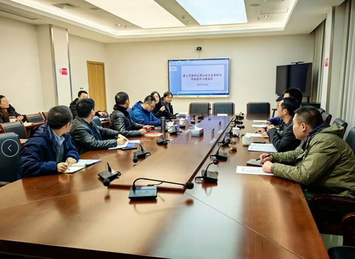 12月25日下午3:30,太阳成集团tyc151cc副经理周远忠(主持工作)、副经理刘俊等一行5人赴遵义市疾病预防控制中心开实践教学基地巡回检查暨访企拓岗工作。遵义市疾控中心党委书记、主任龙涛及市疾控中心相关科室负责人参加会议。